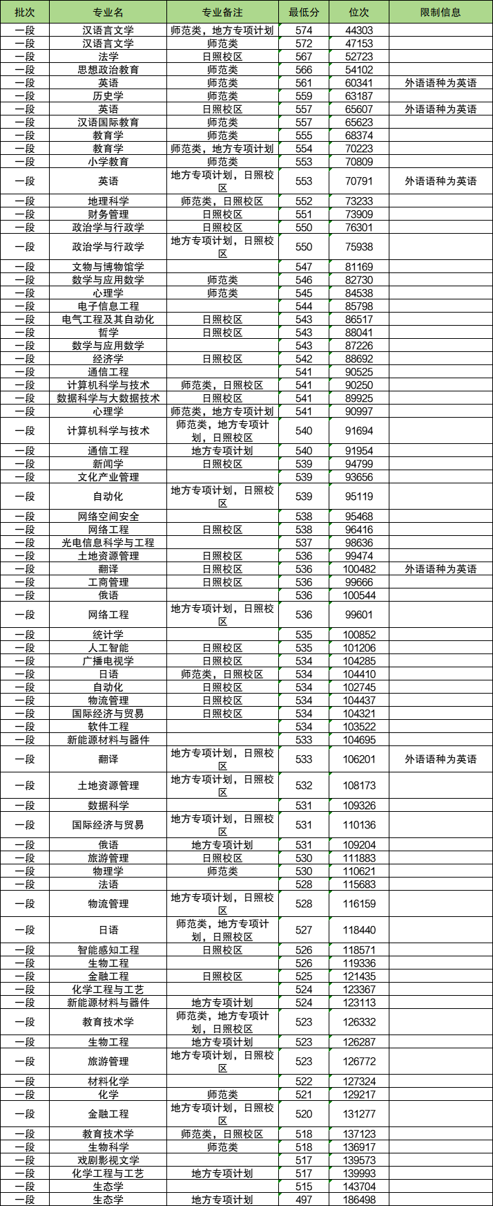 一、山东省:最低497分
