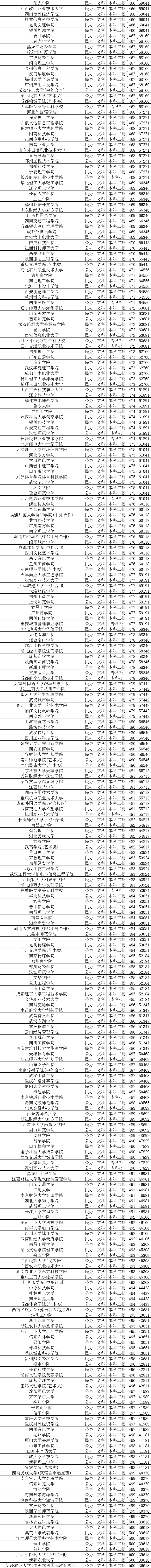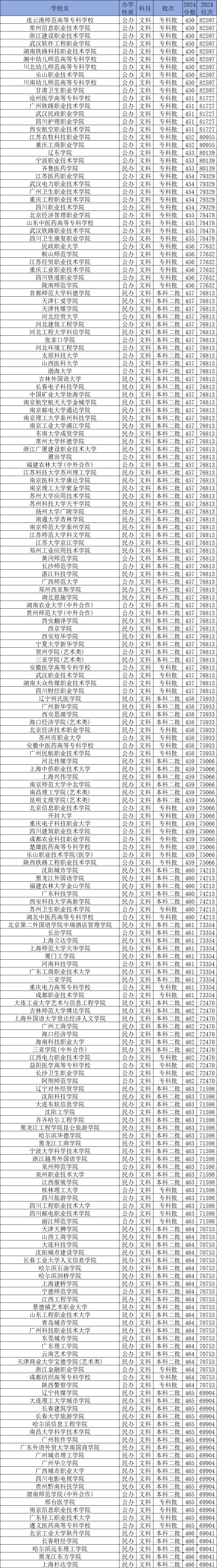 下面是文科生450-500分能上的大学名单一览表: