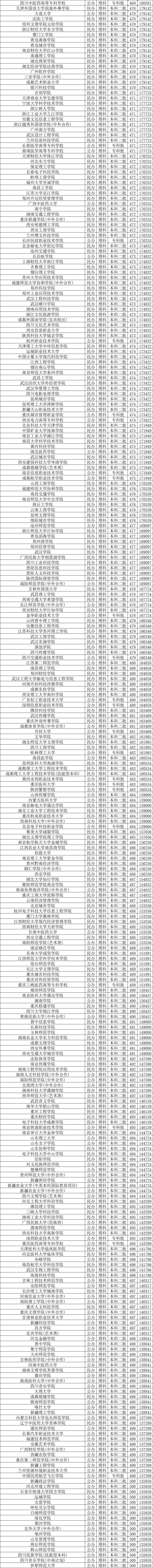 各省450分到500分的大学名单不同,本文以四川省为例,分别整理文科、理科录取分数线位于450-500分的大学。