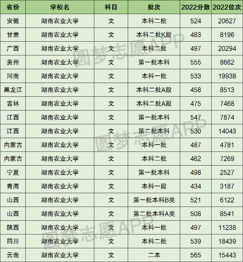 1、湖南农业大学在全国普通高考省份的【文科】招录数据,包含招生批次等信息: