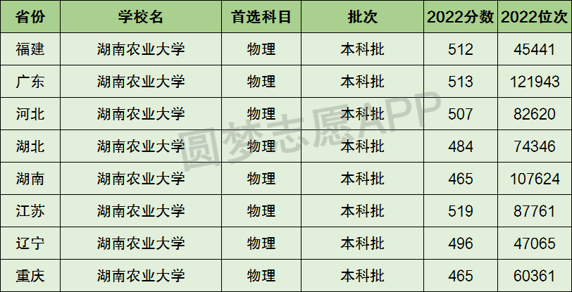 5、湖南农业大学在3+1+2新高考省份【首选物理】的招录数据,招生批次为本科批: