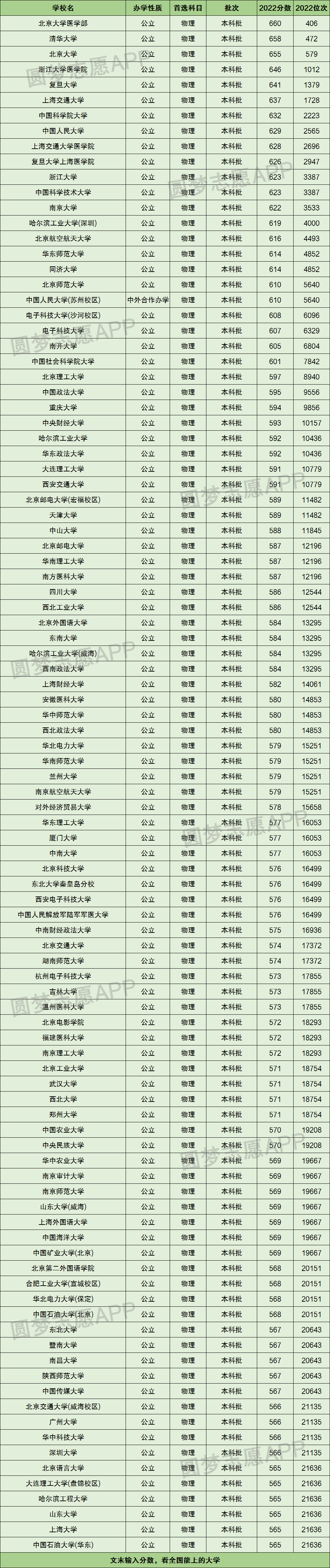 根据2022年全国一本大学在湖北录取分数线及位次排名情况,小编将分数从高至低进行了排序,具体如下表: