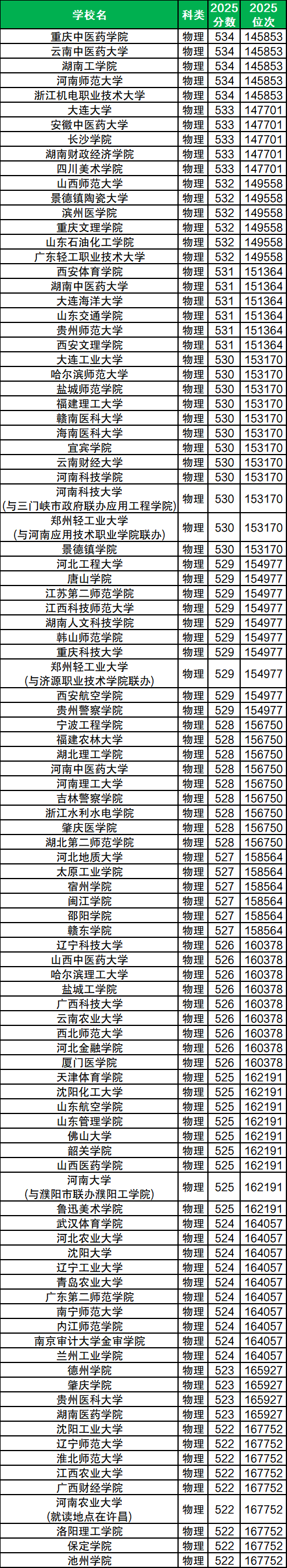 新高考省份无一本、二本划分,这里将特控线以下的院校视为二本大学。我们在下文为大家带来河南、四川、重庆2025年二本院校物理类招生录取情况(仅展示学校普通类最低分,不含中外合作、专项计划等特殊专业组),一起来看看二本大学分数线是多少吧!