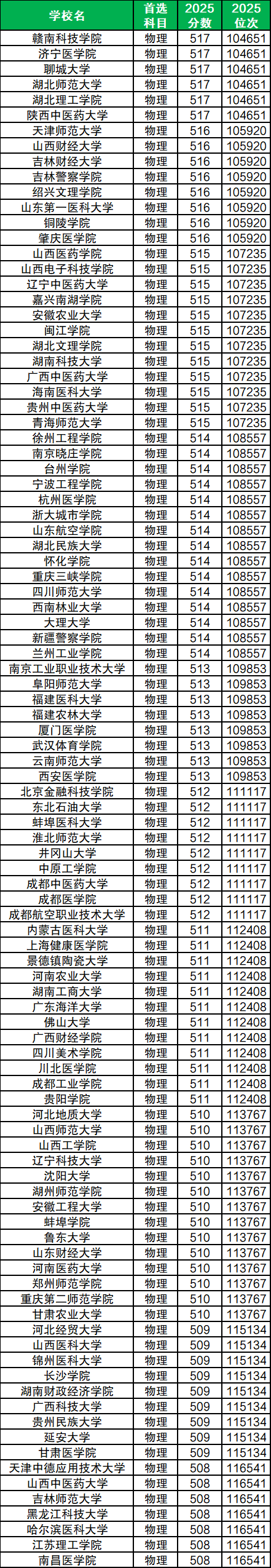 对于物理类考生而言,二本分数可以填报的最高层次院校为双一流大学——成都中医药大学,最低分为512分,对应招生专业组内含护理学、助产学。
