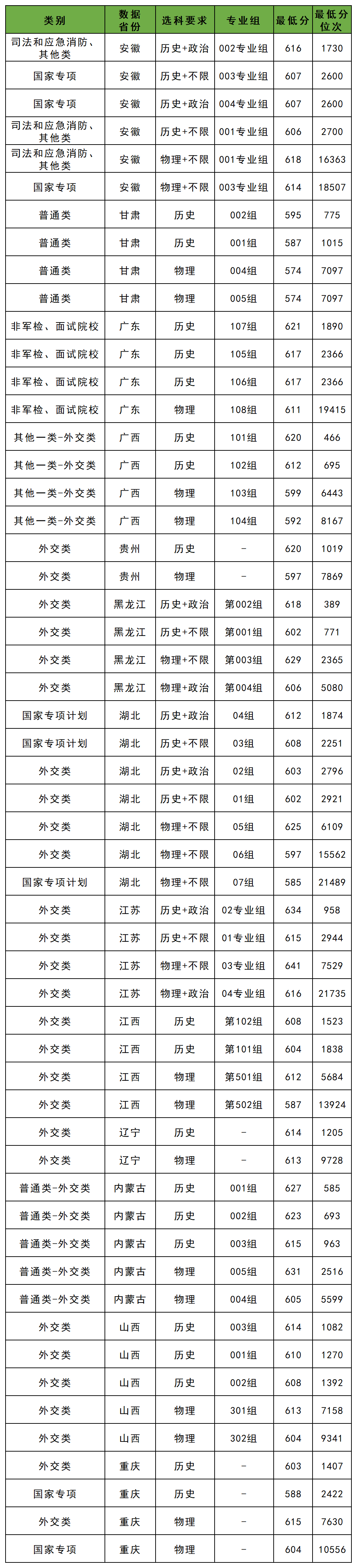 比如在北京市,外交学院录取最低分是614分,但这只是选考物理科目的最低分,如果是选考政治科目的话最低分可达621分,如果是选考历史和政治的话,最低616分。