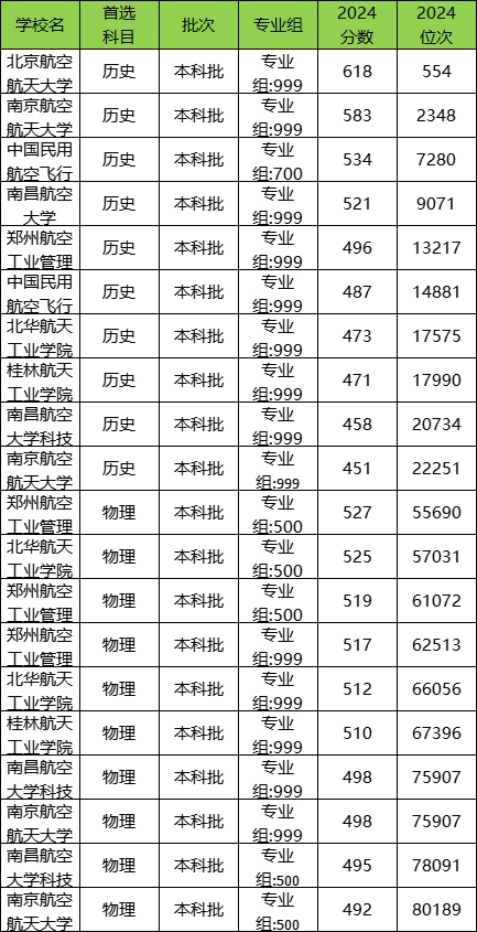 2024年江苏共有50所航天航空大学在本科批进行录取,其中历史14,物理36所。