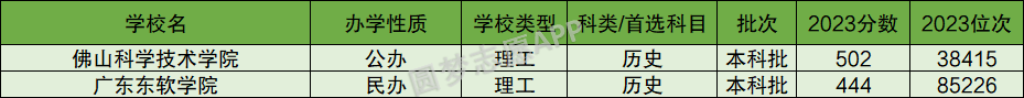 佛山历史类中分数最低最好考的二本大学为广东东软学院,2023年在佛山最低分为444分,对应佛山全市最低位次为85226。