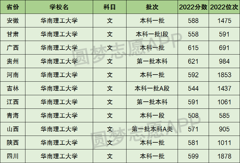 1、华南理工大学在全国普通高考省份的【文科】招录数据,包含招生批次等信息: