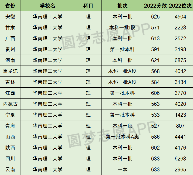 下面圆梦志愿将为大家展示华南理工大学2022年在全国各省市的最低分数线和位次,大家可以在了解华南理工大学在全国各省详细招生批次的同时,也顺便看看华南理工大学的招生录取分数线是多少!
