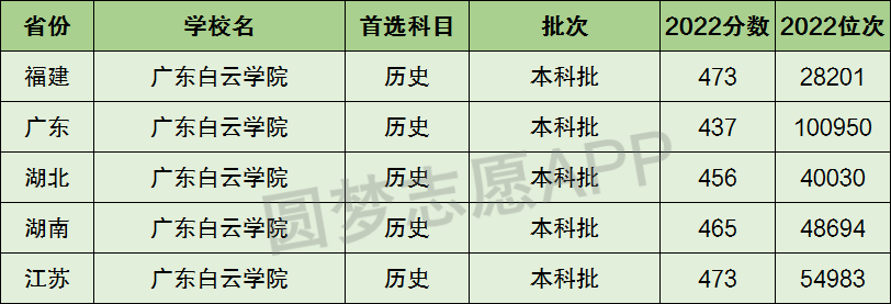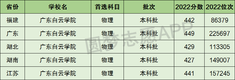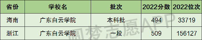 下面圆梦志愿将为大家展示广东白云学院2022年在全国各省市的最低分数线和位次,大家可以在了解广东白云学院在全国各省详细招生批次的同时,也顺便看看广东白云学院的招生录取分数线是多少!