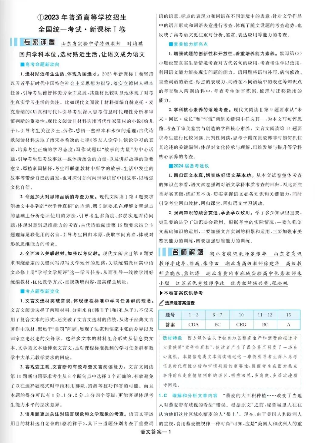 二、2023湖北高考语文答案汇总