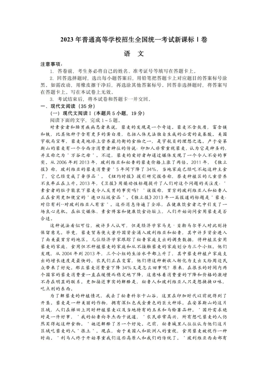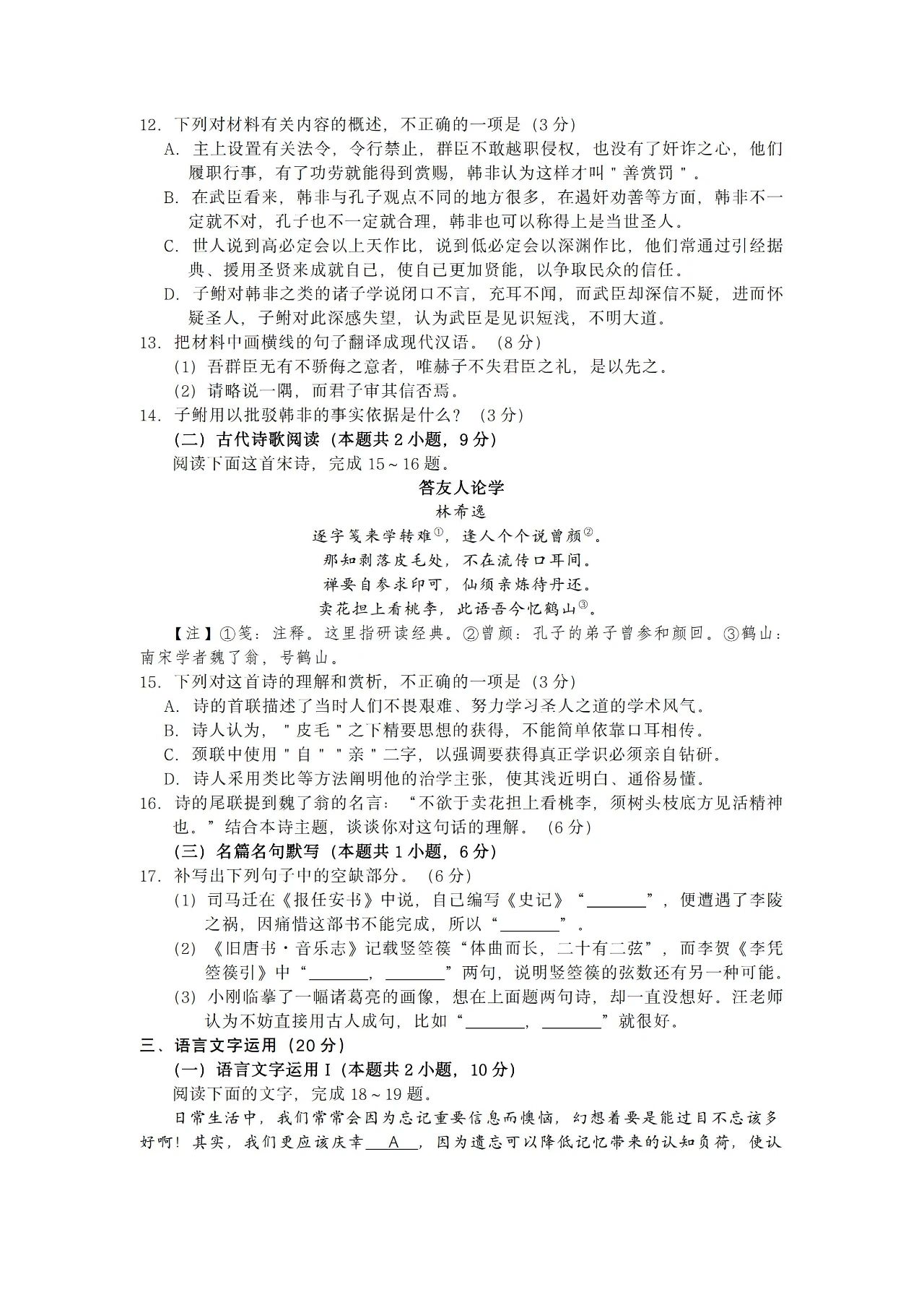 一、2023湖北高考语文试卷