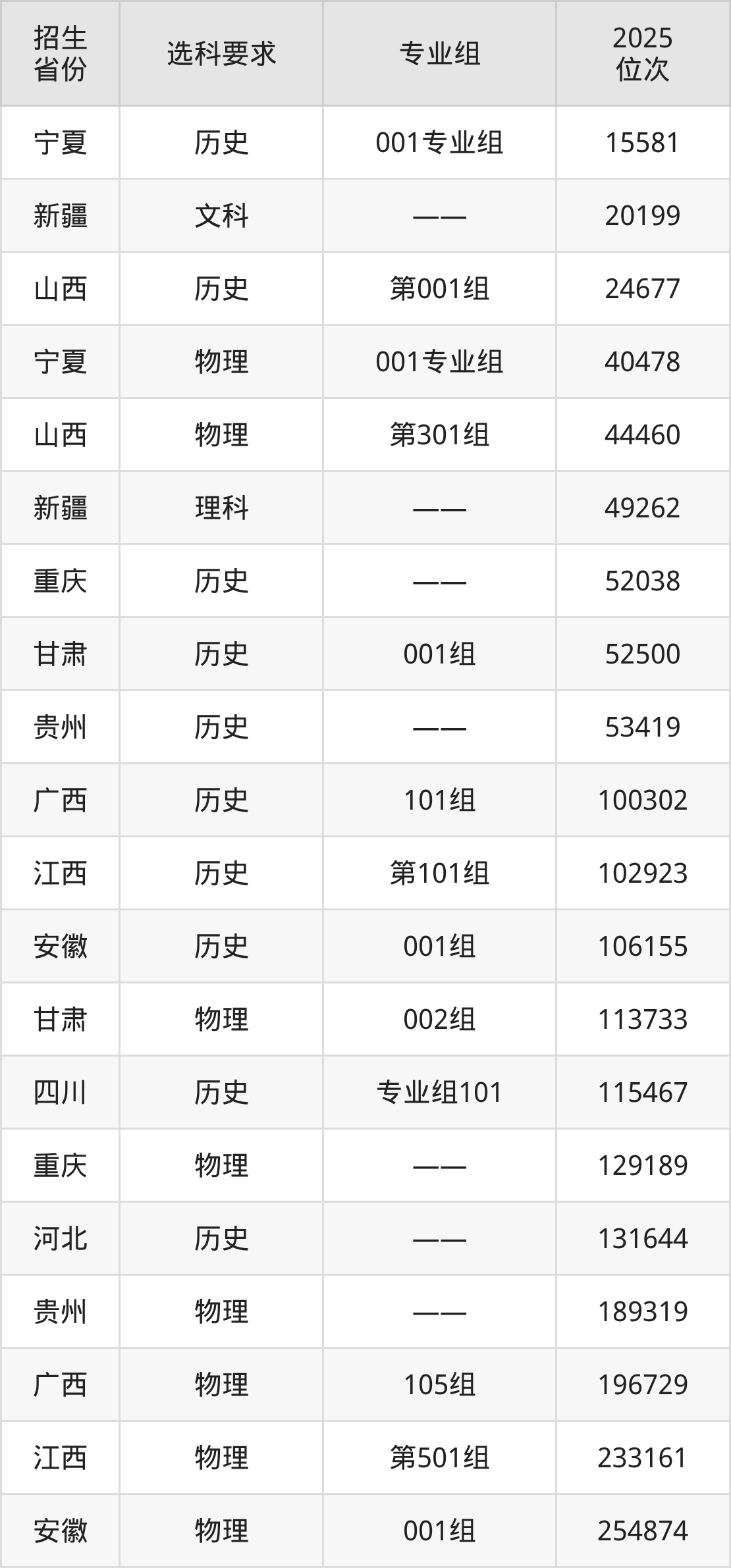 安康职业技术学院2025年在全国各省的位次差异较大,最高位次是15581位(宁夏历史类)、最低位次是531263位(山东)。各省具体位次请看下图: