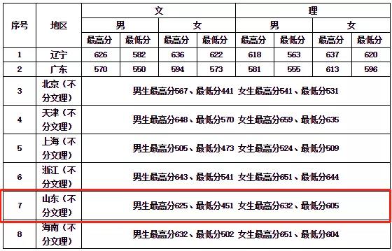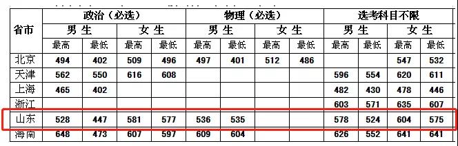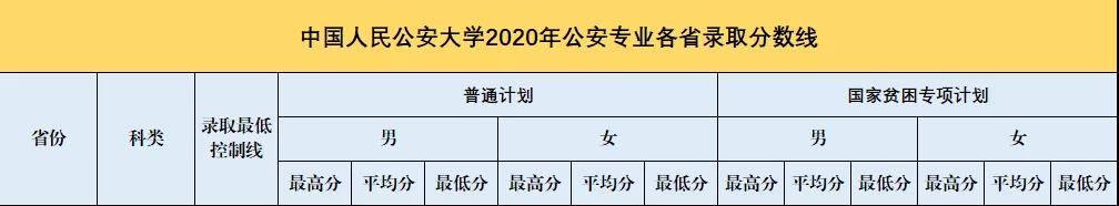 🔼图为2020年中国人民公安大学 山东省的录取分数线