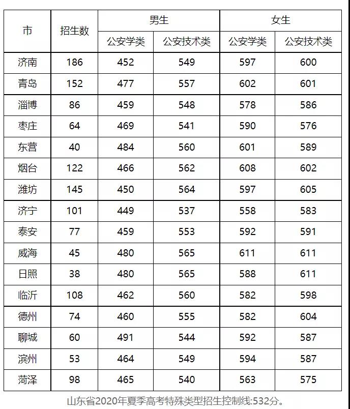 图片🔼山东警察学院2020年全省十六市录取最低分
