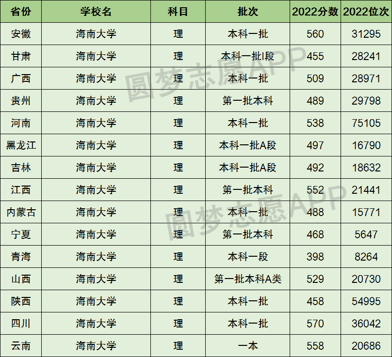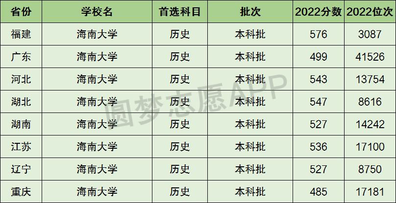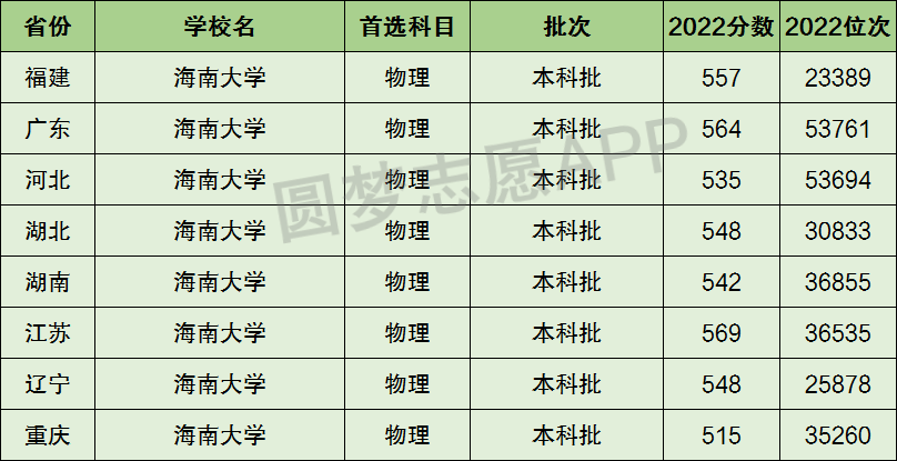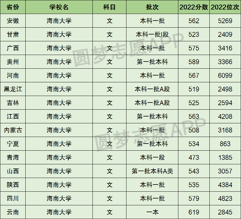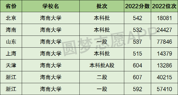 下面圆梦志愿将为大家展示海南大学2022年在全国各省市的最低分数线和位次,大家可以在了解海南大学在全国各省详细招生批次的同时,也顺便看看海南大学的招生录取分数线是多少!