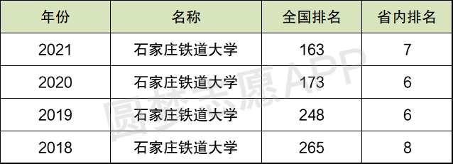 虽然说小211的含金量远远不如211大学和985大学高,但是能够进入小211大学的,其实力和能力也是被国家所认可的,下面是石家庄铁道大学校友会近几年的排名情况: