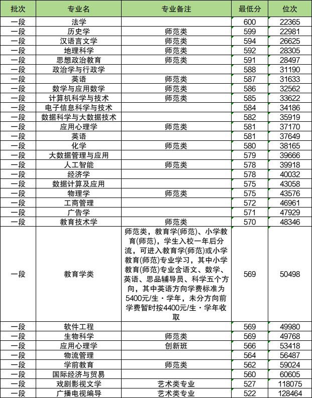 | 地理科学(师范) | 历史 | 本科批 | 600 |