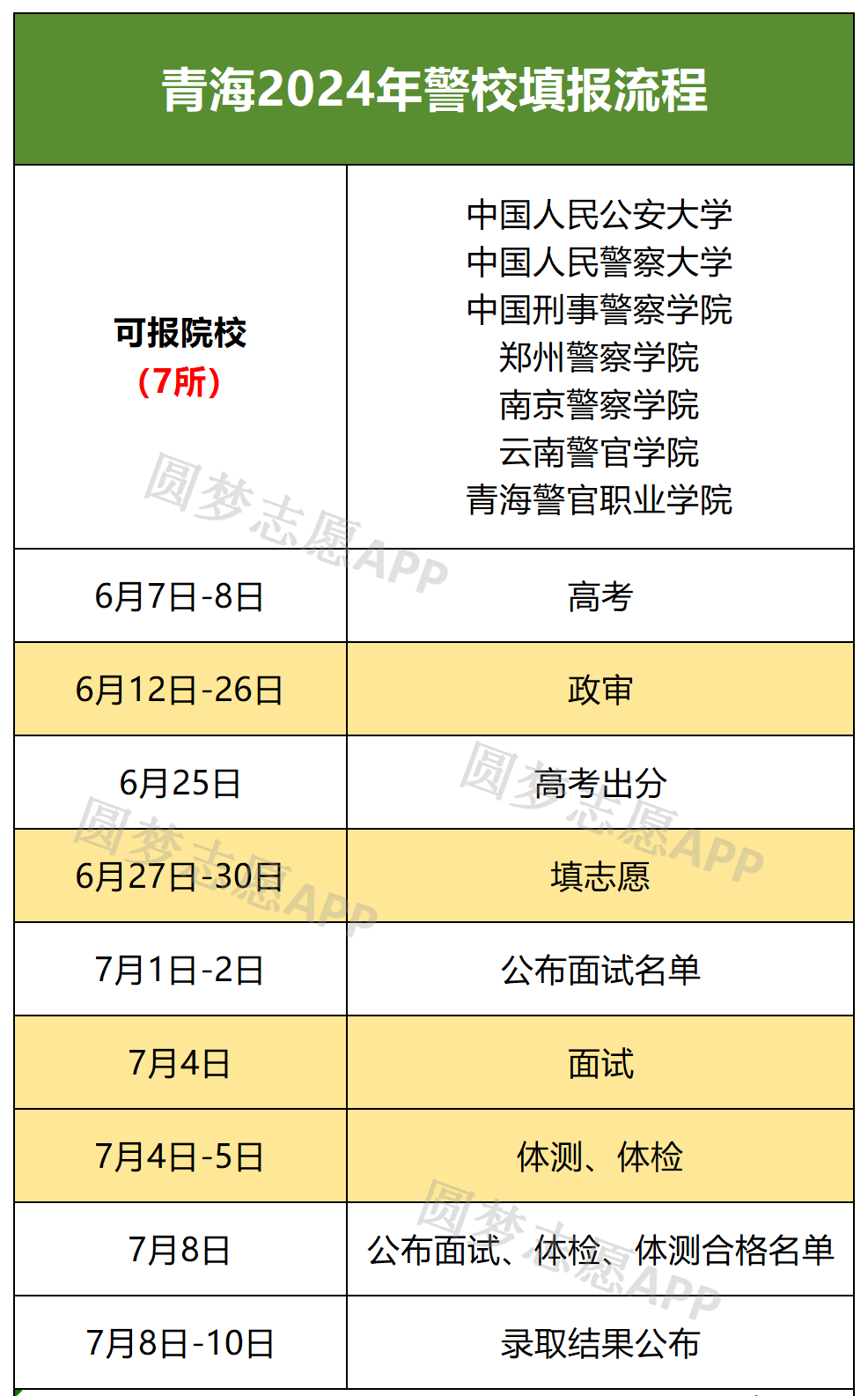 2025年青海警校报考流程主要包括填报志愿(6月27日-30日)、政审(6月13日-26日)、体检面试(7月4日-5日)等。想要报考警校需要满足户籍、年龄16到22岁、未婚、符合公安院校体检标准等条件。完整流程及时间安排表如下。