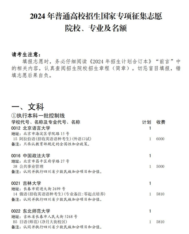 四川省教育考试院关于国家专项计划录取院校未完成计划征集志愿的通知(下面图片为部分征集志愿院校数据)