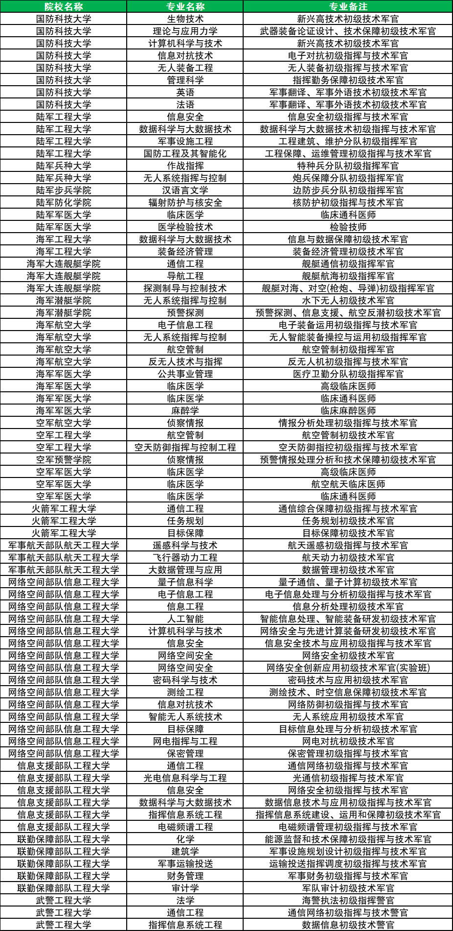 专业招女生的军校有:陆军工程大学、网络空间部队信息工程大学、信息支援部队工程大学