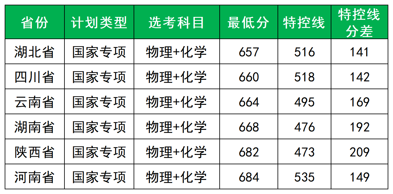 2025年国科大在国家专项中,最低录取分范围为657-684分,与特控线的分差在141-209分,平均需超特控线167分。