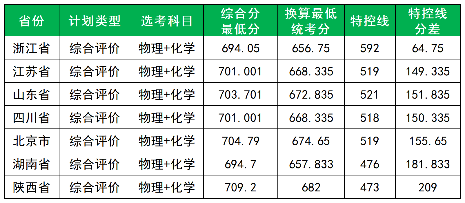 2025年国科大在综合评价中,最低录取分(高考成绩)范围为656.75-682分,与特控线的分差在64.75-209分,平均需超特控线151分。与特控线分差小的地区为浙江省(64.75 分),最大的地区为陕西省(209 分)。
