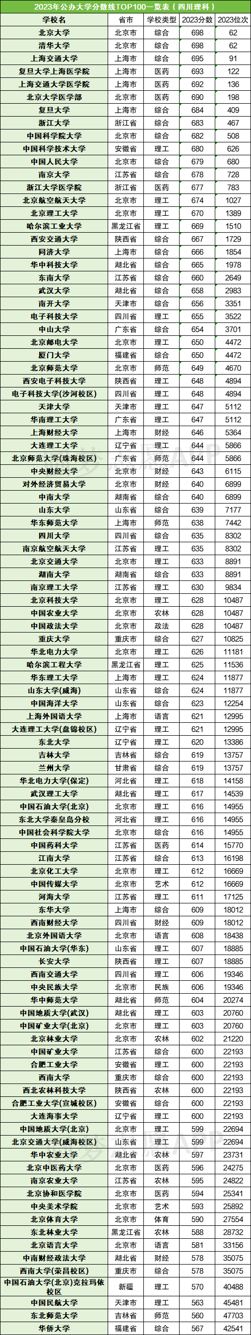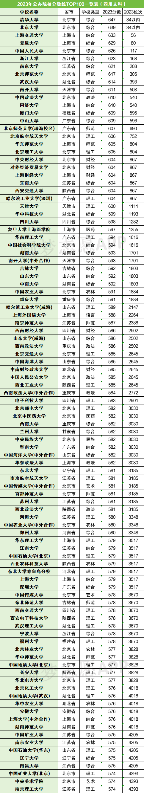 由于本文篇幅有限,小编在此整理的是各大学2023年在四川的录取分数线一览表,如下: