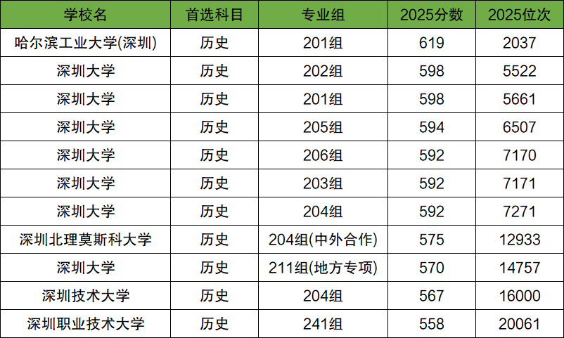如下仅为各位整理了2025年深圳各大学历史科目考生的最低分数线一览表,供大家参考: