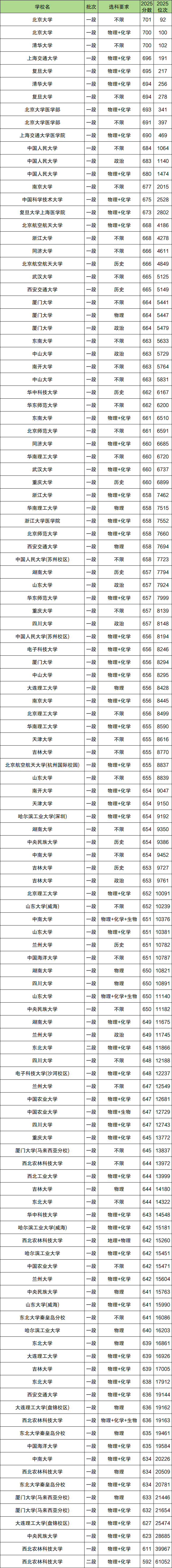 二、985大学录取分数线一览表