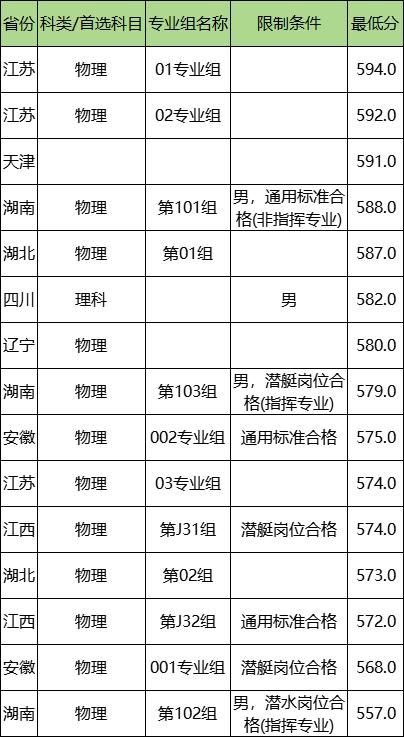 2024年海军潜艇学院在各省的招录分数都不一样,具体如下: