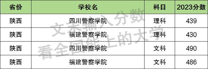 下表为全国二本大学在陕西省文科、理科分数的警察学院。