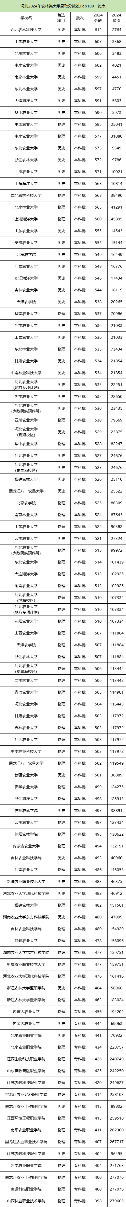 篇幅有限,下面是河北2024年农林类大学录取分数线Top100一览表: