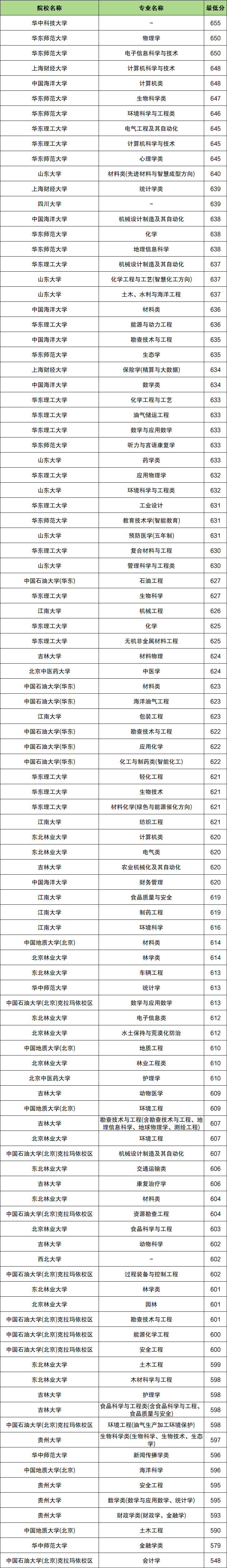 | 院校名称 | 专业名称 | 最低分 |