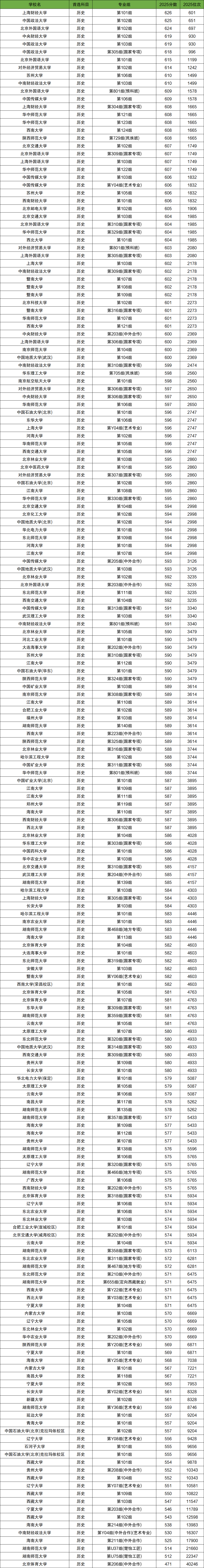 2025年在历史类录取分数较高的纯211大学分别如下: