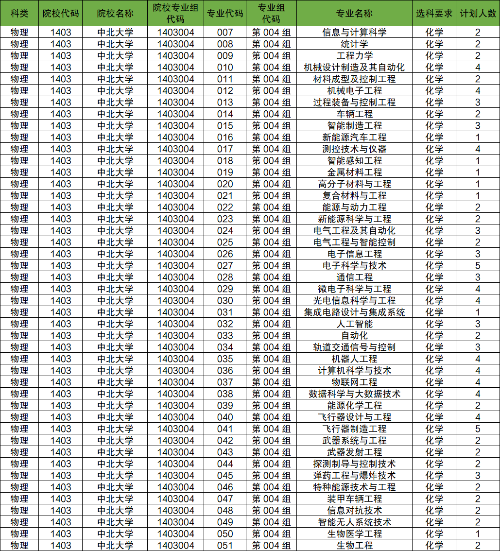 2024年中北大学的招生代码为1403001、1403003、1403004等,本期将介绍2024年中北大学各专业招生人数,以及高考志愿填报中各专业对应招生代码。