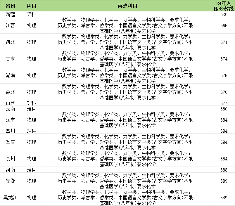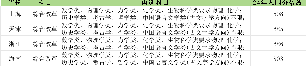 | 省份 | 科目 | 再选科目 | 24年入围分数线 |