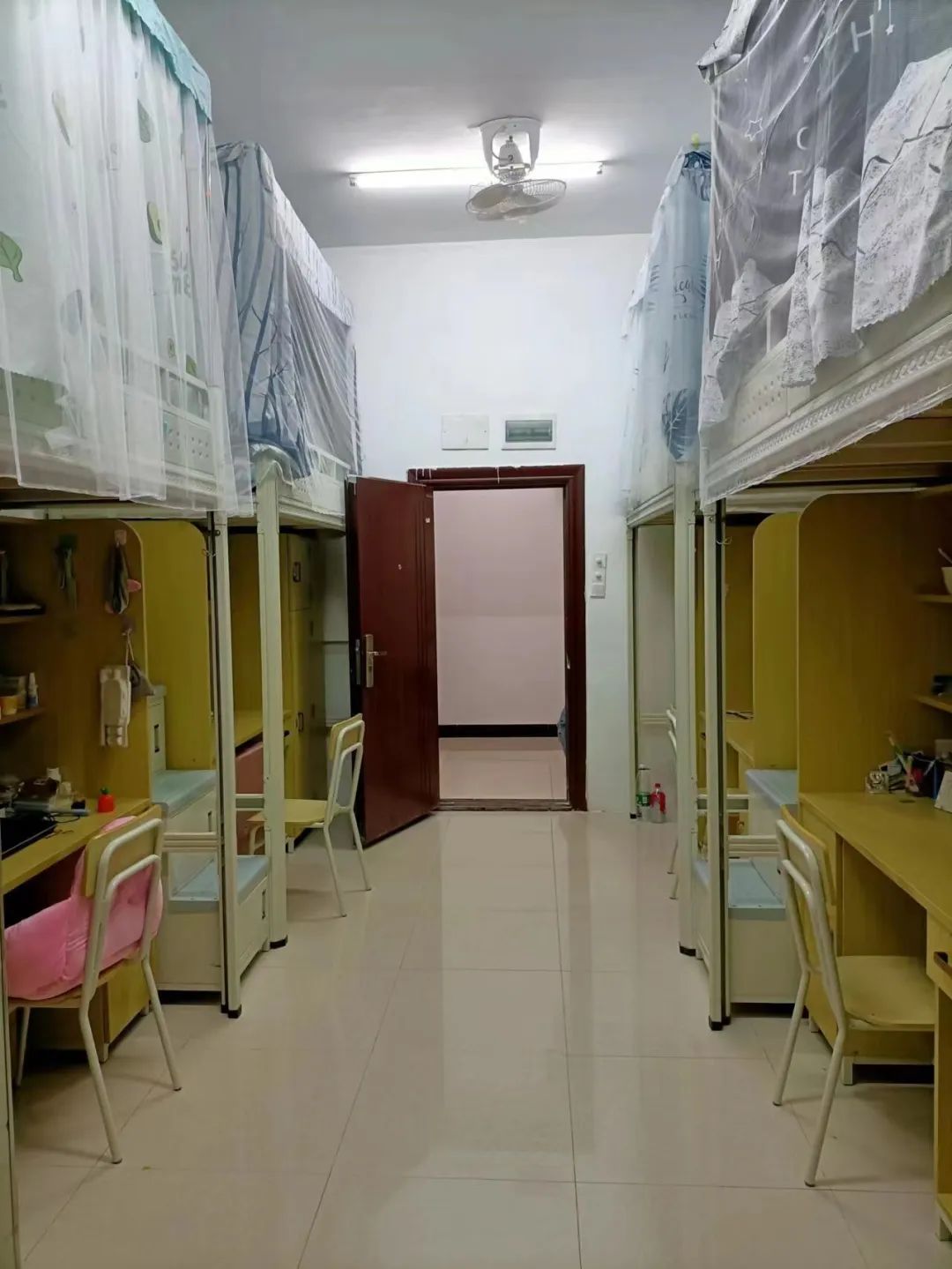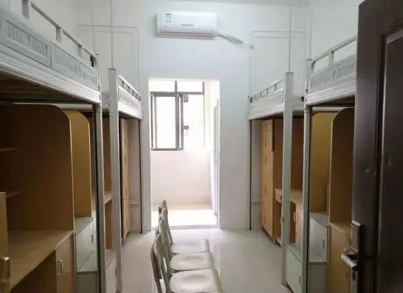 宿舍内配置有空调、电风扇,一栋二栋为公共卫生间,三栋到八栋为独立卫生间;