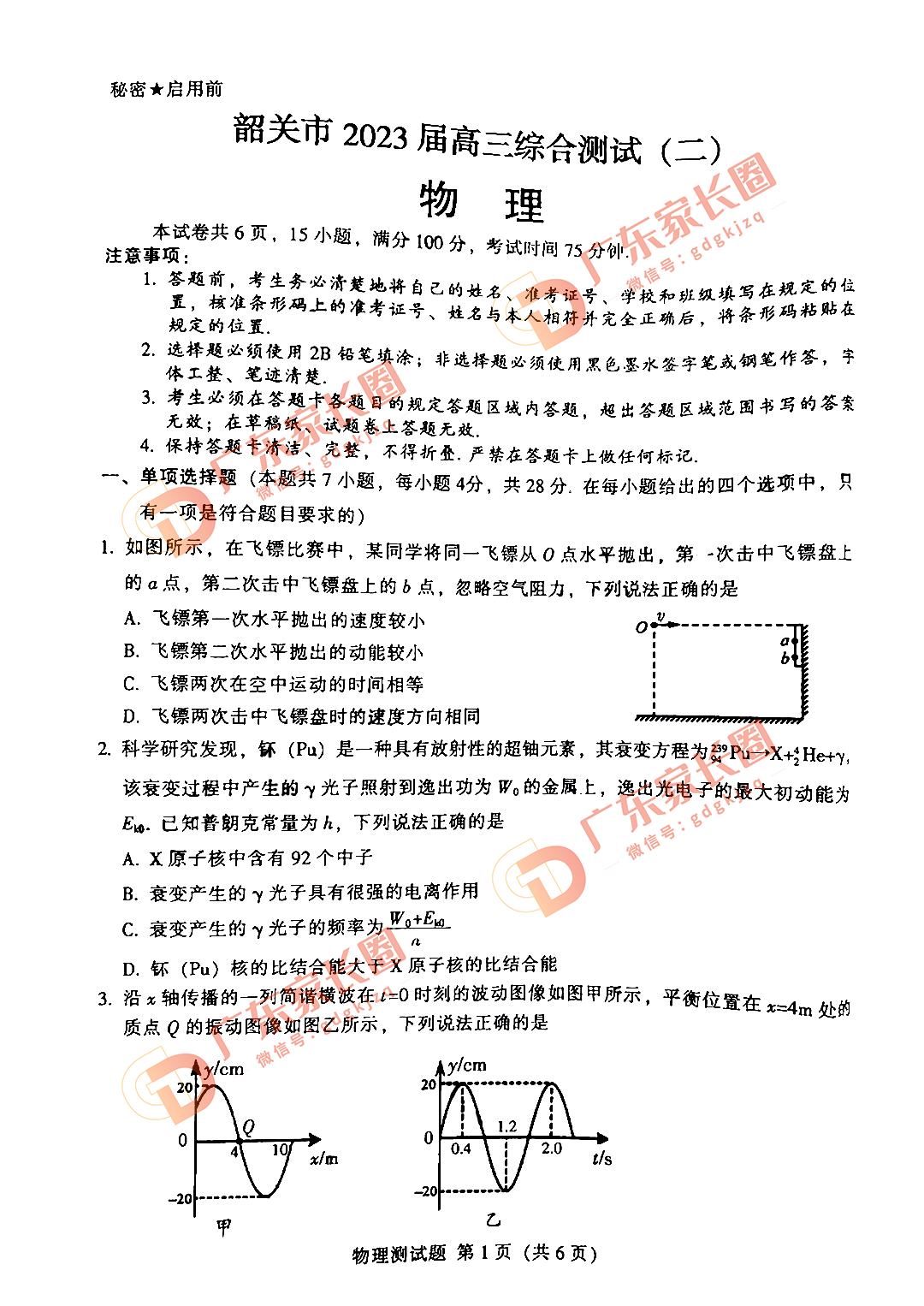 2023韶关二模考试将于2023年4月25日进行考试,本文将在韶关二模考试结束后,为大家更新2023韶关二模考试各科试卷答案,含2023韶关二模语文、数学、英语、物理、历史等科目试卷答案,一起来看看2023韶关二模各科试卷及答案吧!
