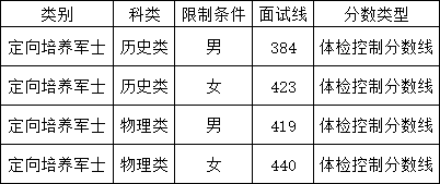 2024年广东定向培养军士军检控制分数线:历史类384分、物理类419分。具体如下: