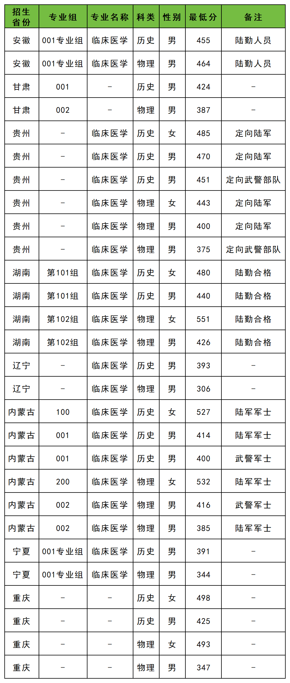 下面是重庆医药高等专科学校2025年在全国各省定向士官招生分数线一览表,供参考: