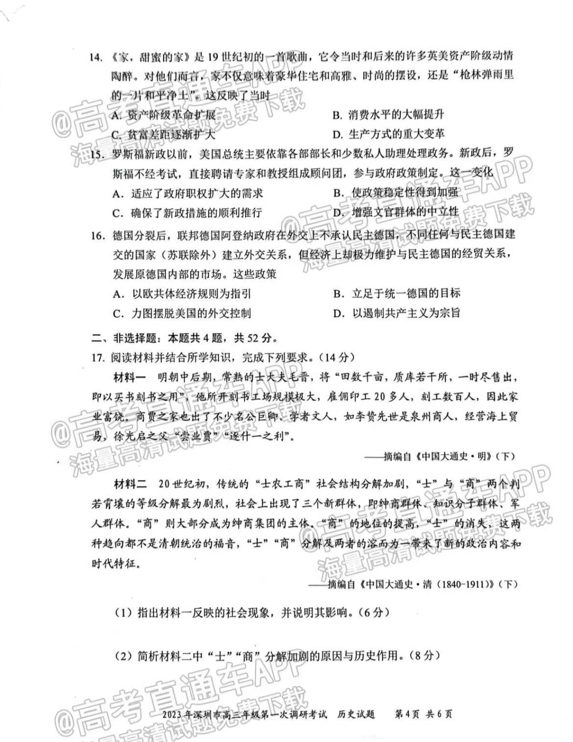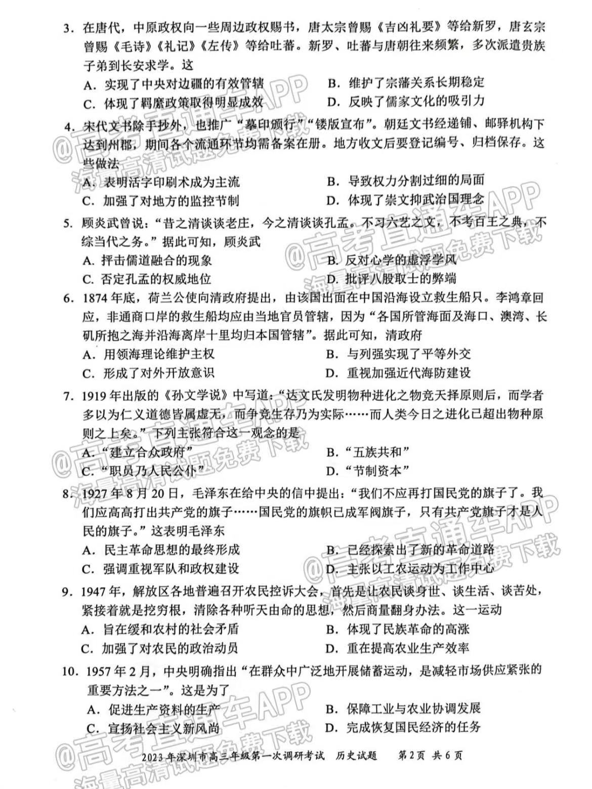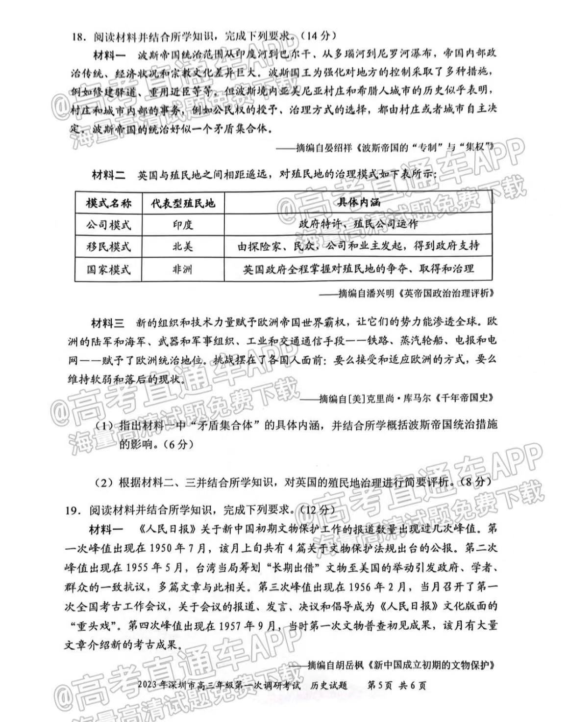 一、2023深圳一模历史试卷