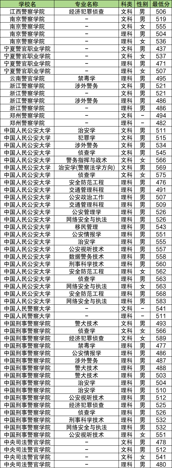 中央司法警官学院:文科478分、理科480分。