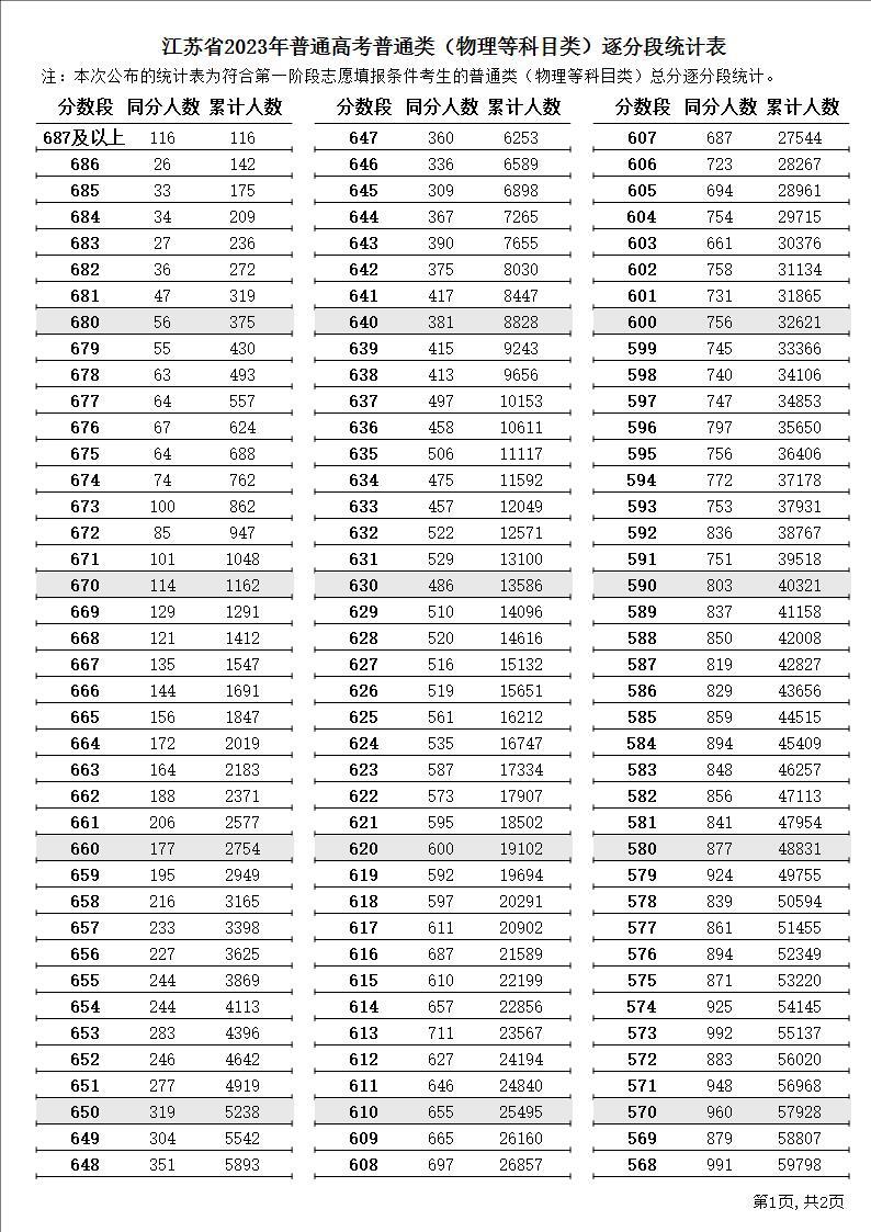 二.江苏高考2023位次表