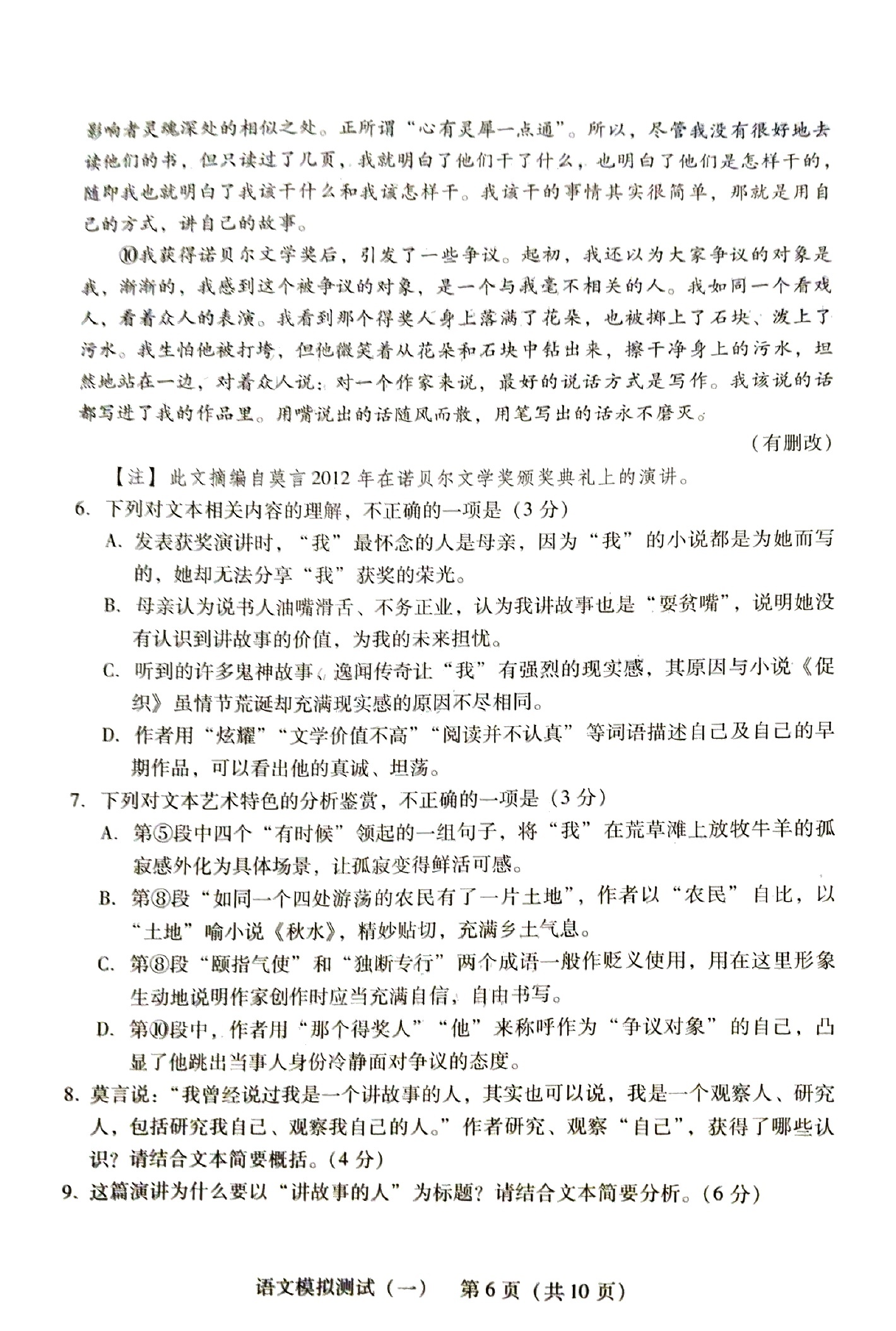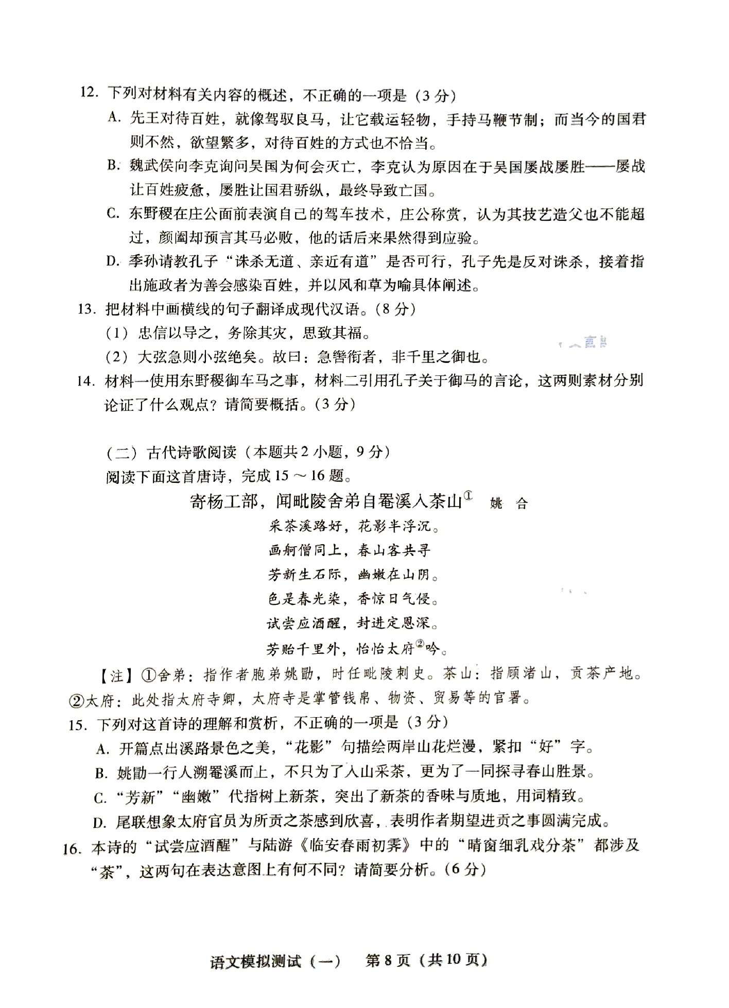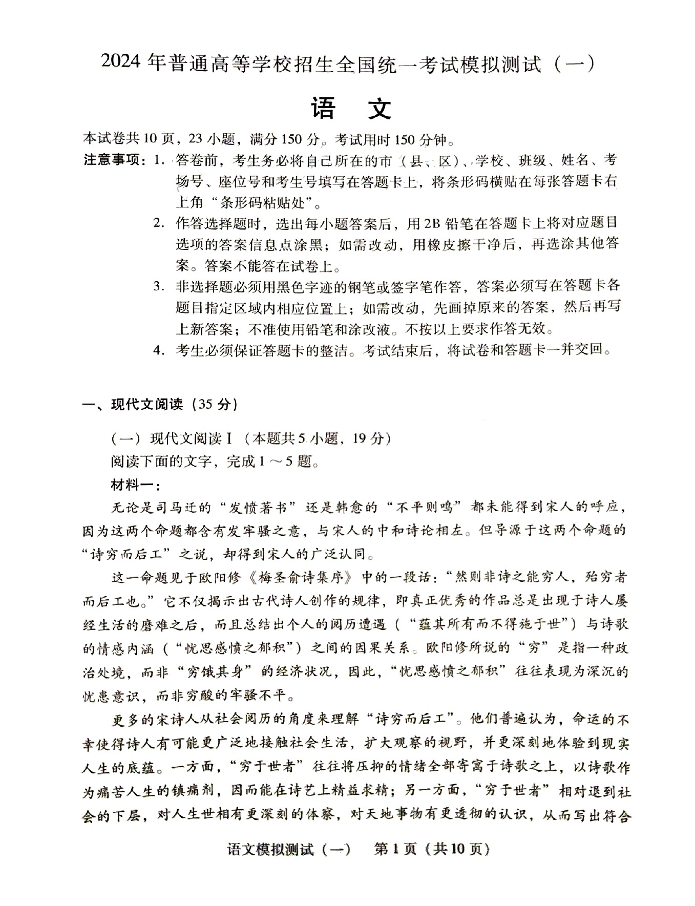 1.2024广东一模语文答案及试卷解析