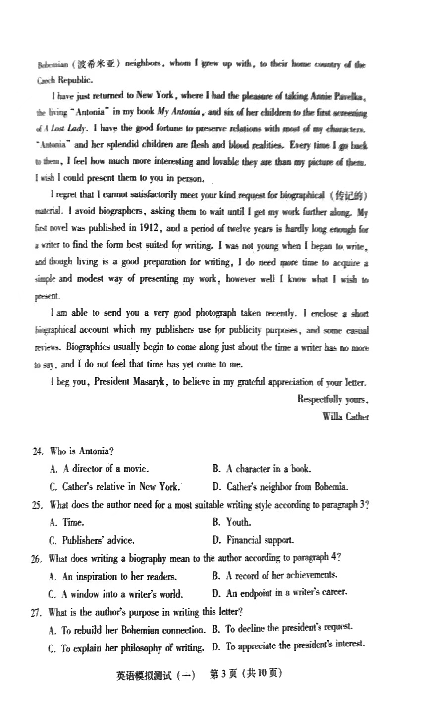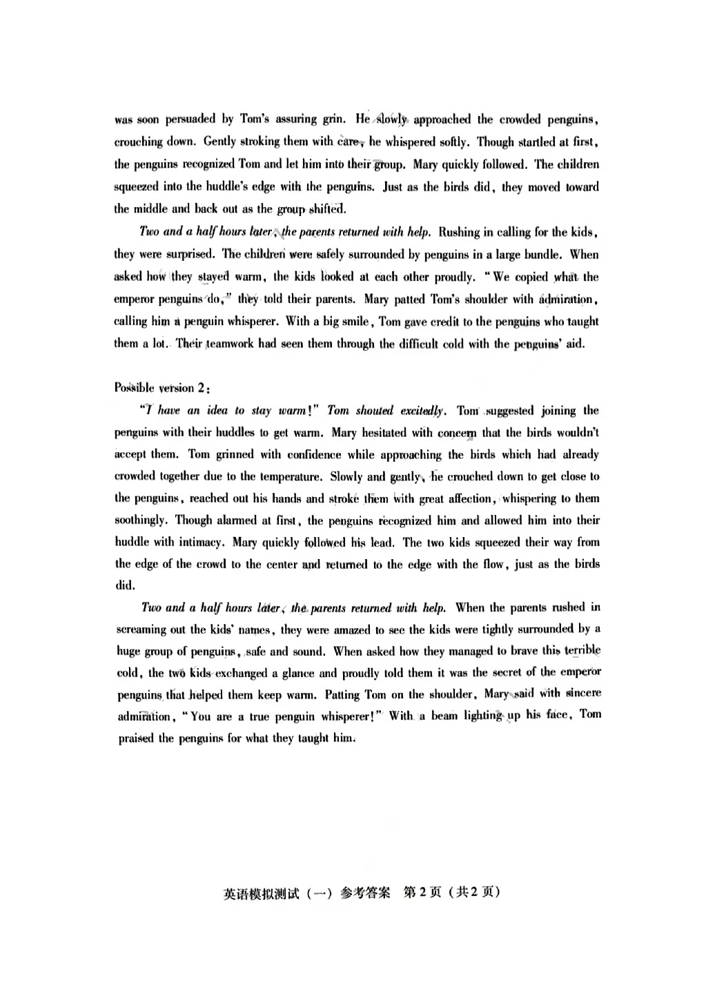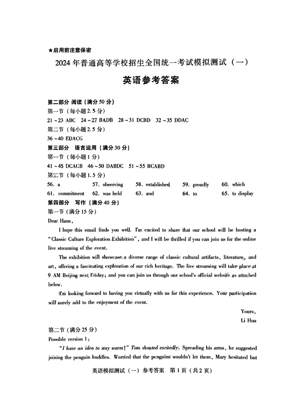 3.2024广东一模英语答案及试卷解析