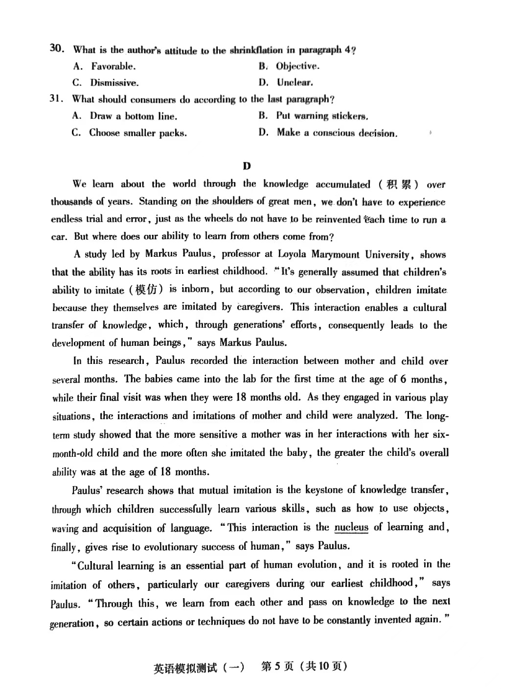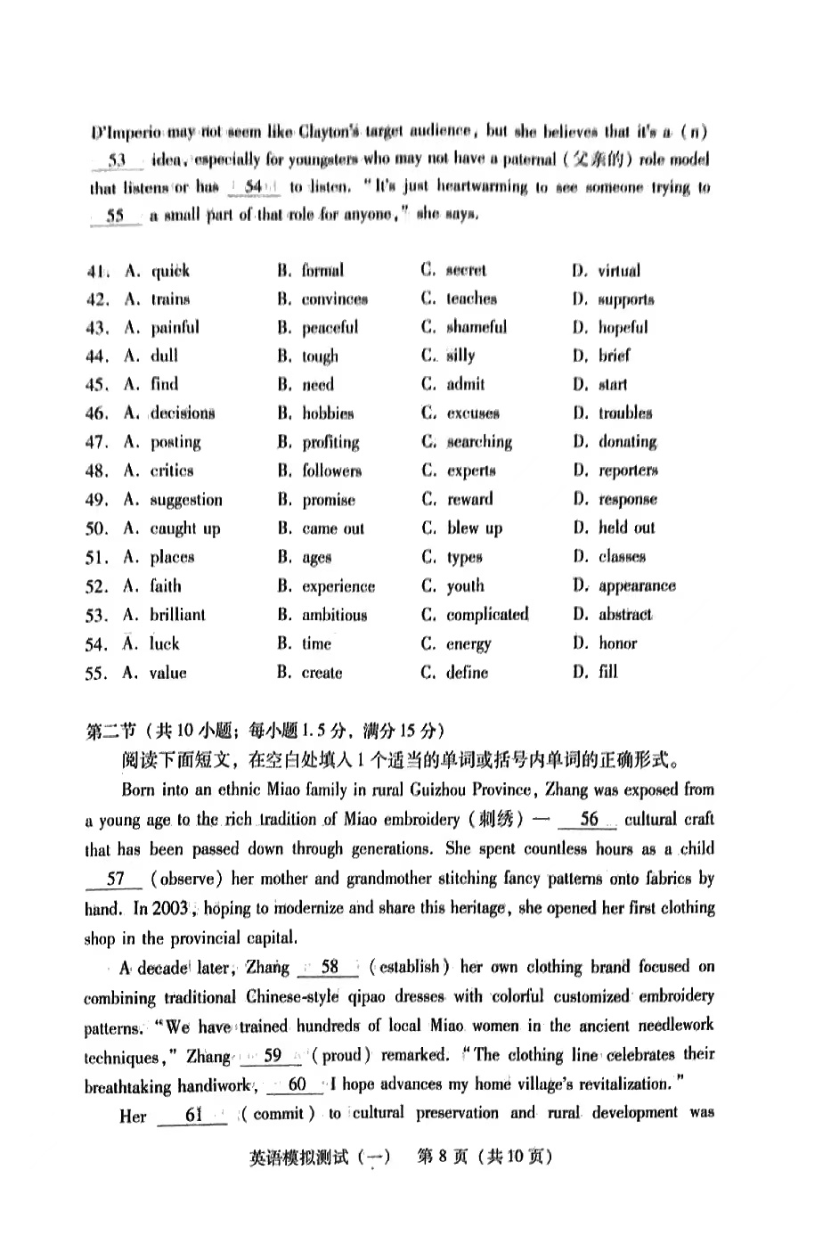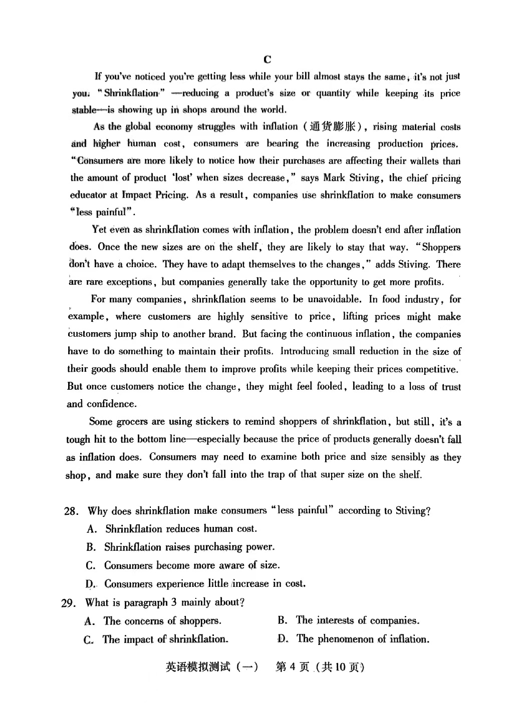 3.2024广东一模英语答案及试卷解析