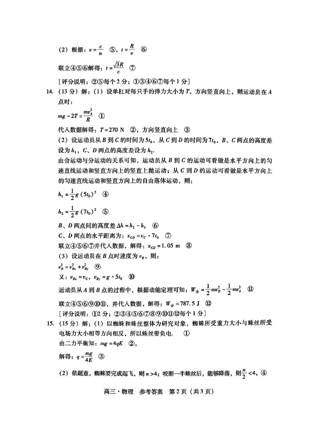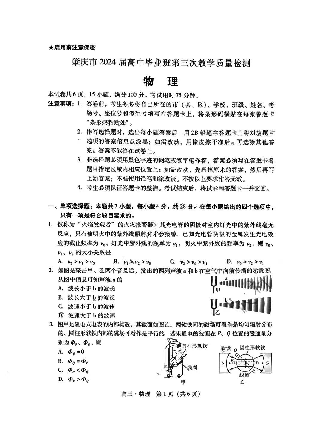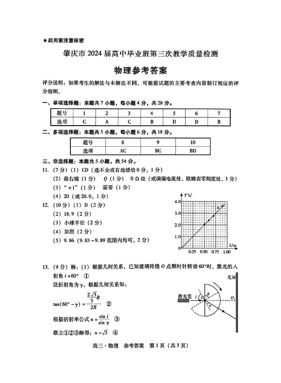 5.2024广东一模物理答案及试卷解析