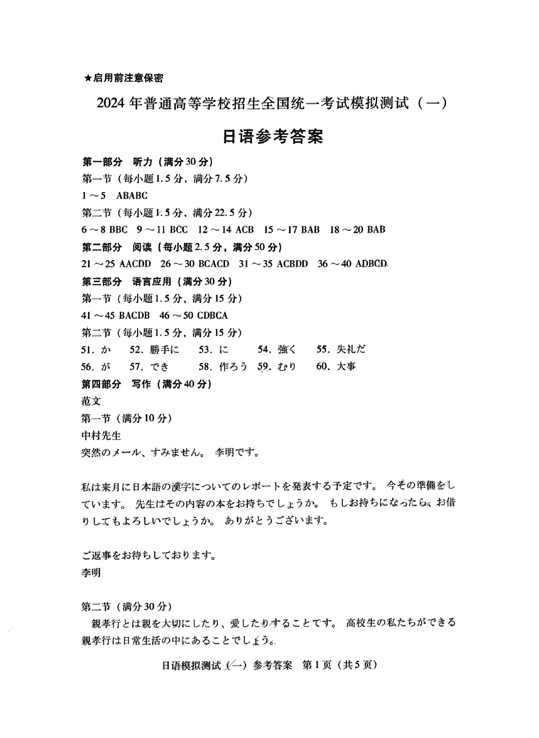 4.2024广东一模日语答案及试卷解析