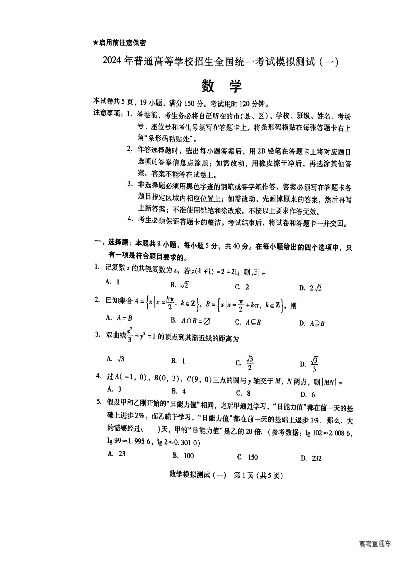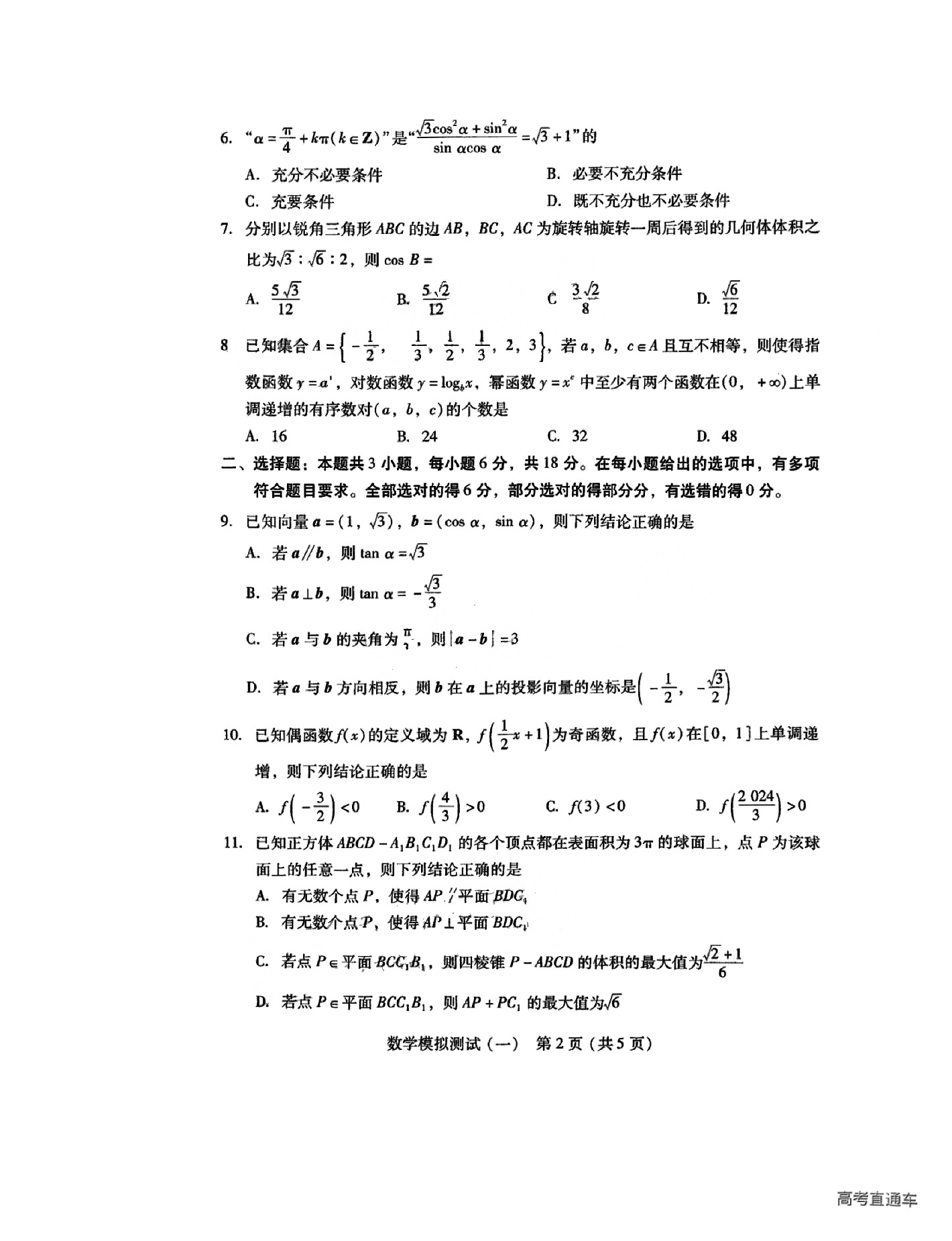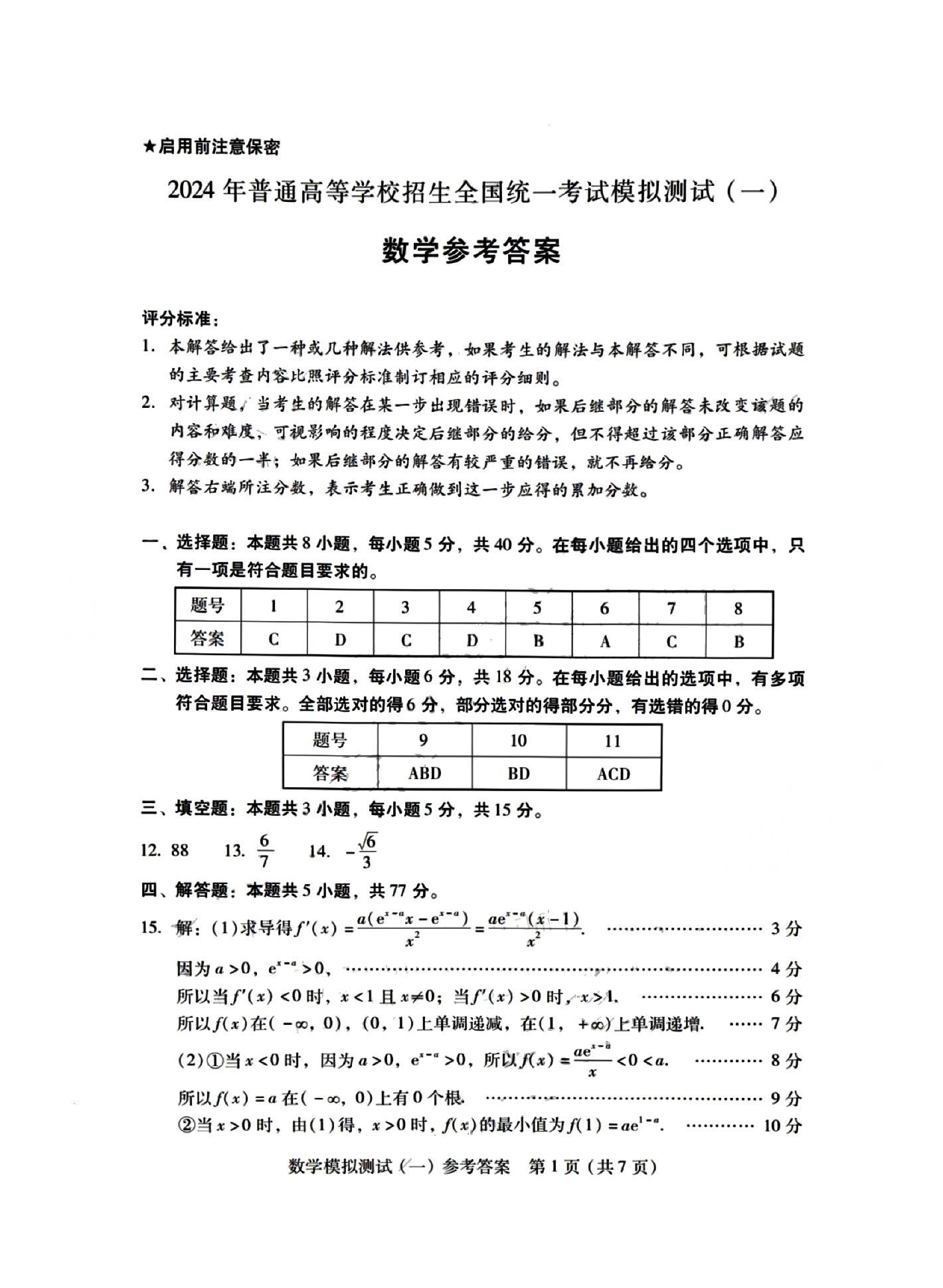2.2024广东一模数学答案及试卷解析